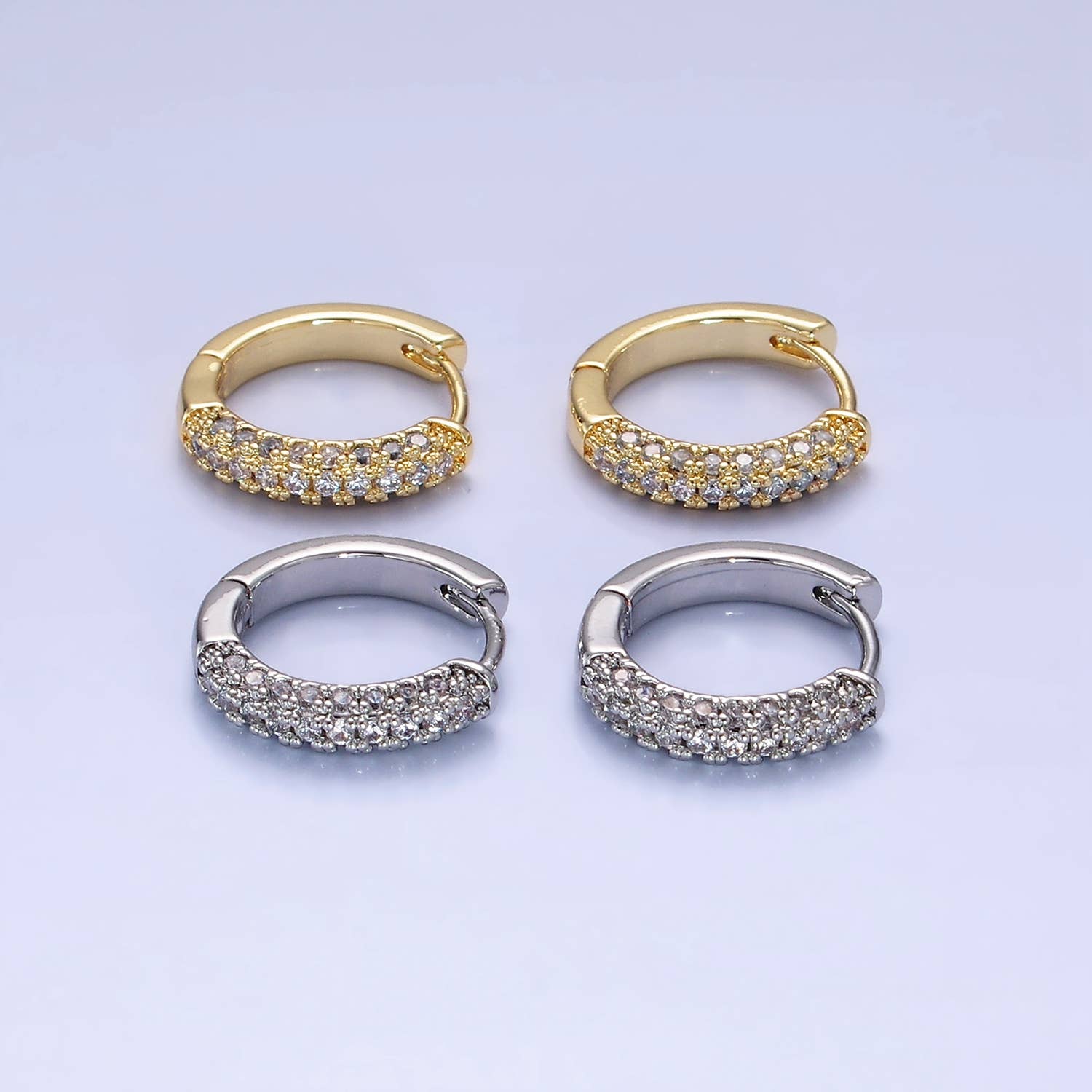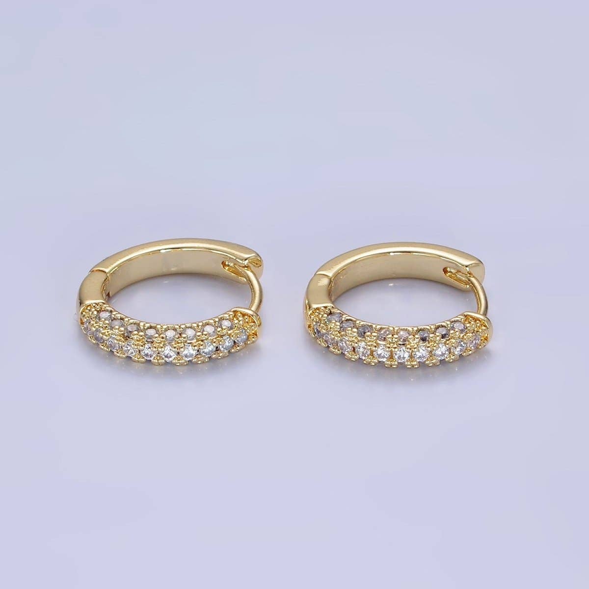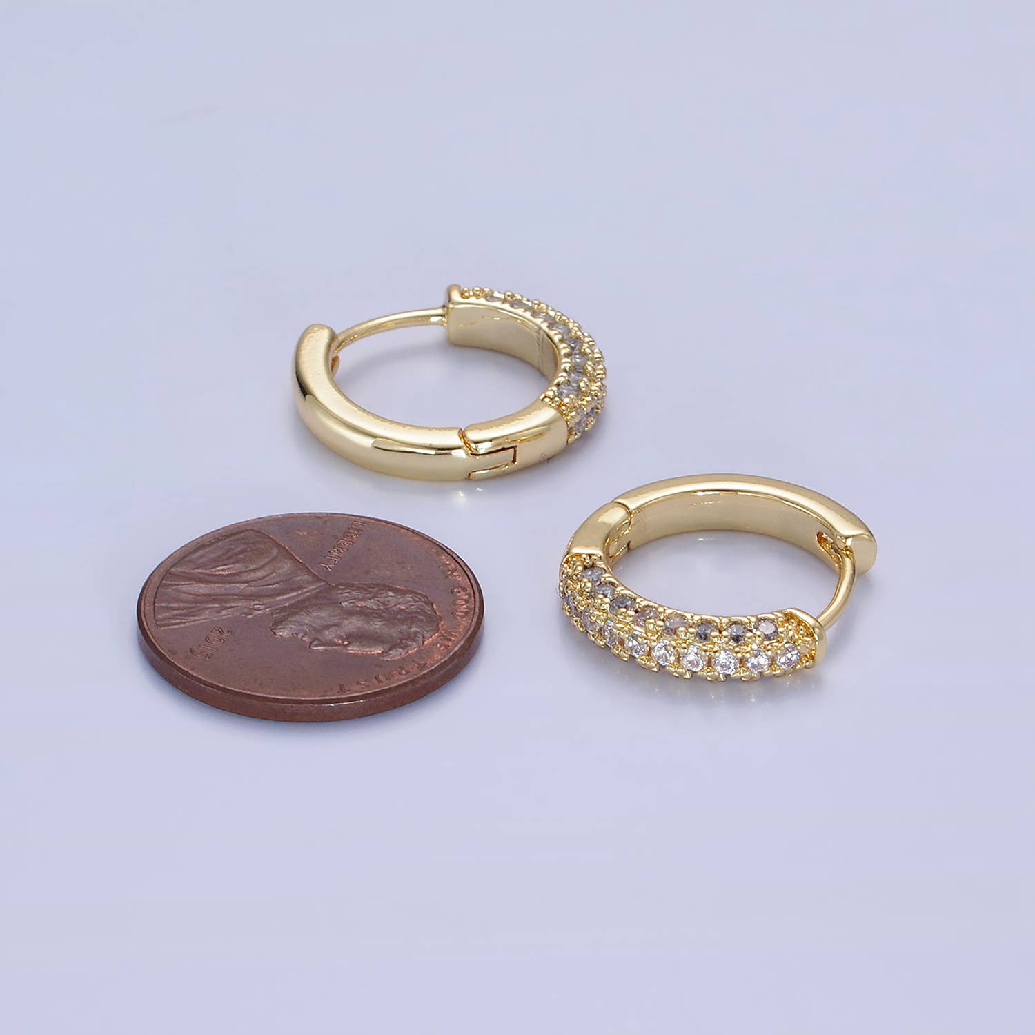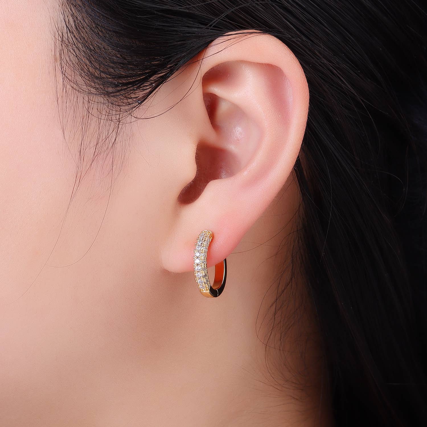 Add a touch of sparkle to your everyday look with these 14K gold-filled 16mm micro-pave CZ huggie earrings. Their petite size hugs your earlobe perfectly while the dazzling pave stones catch every eye. Lightweight and stylish, these earrings make it easy to shine bright from morning coffee to evening cocktails.