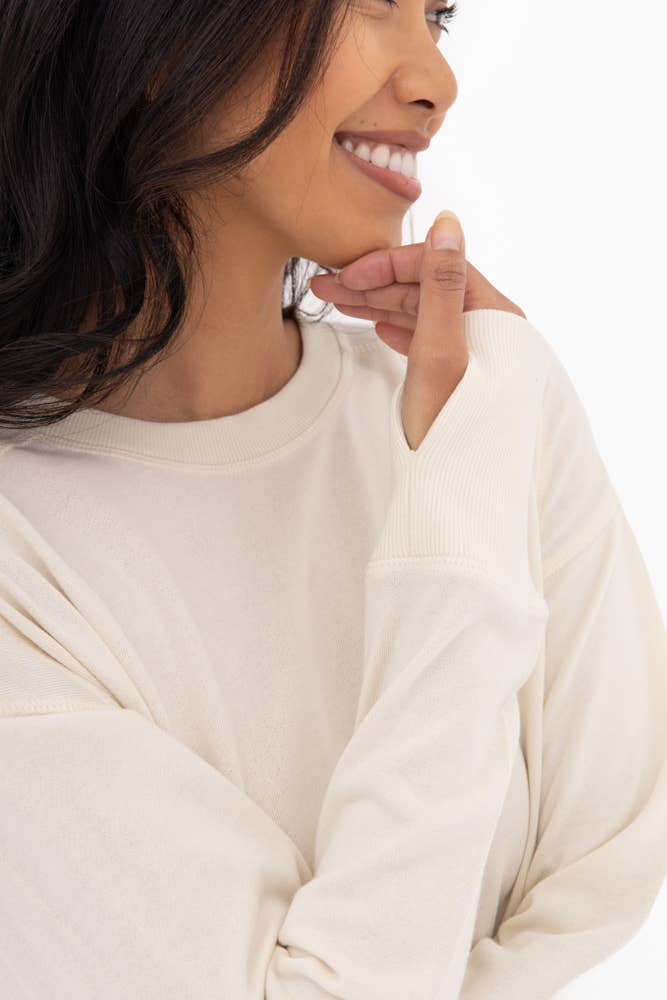 Coming in a soft & drapey organic cotton blend French Terry fabric, this boxy fit crew neck top will keep you comfortable all year long!