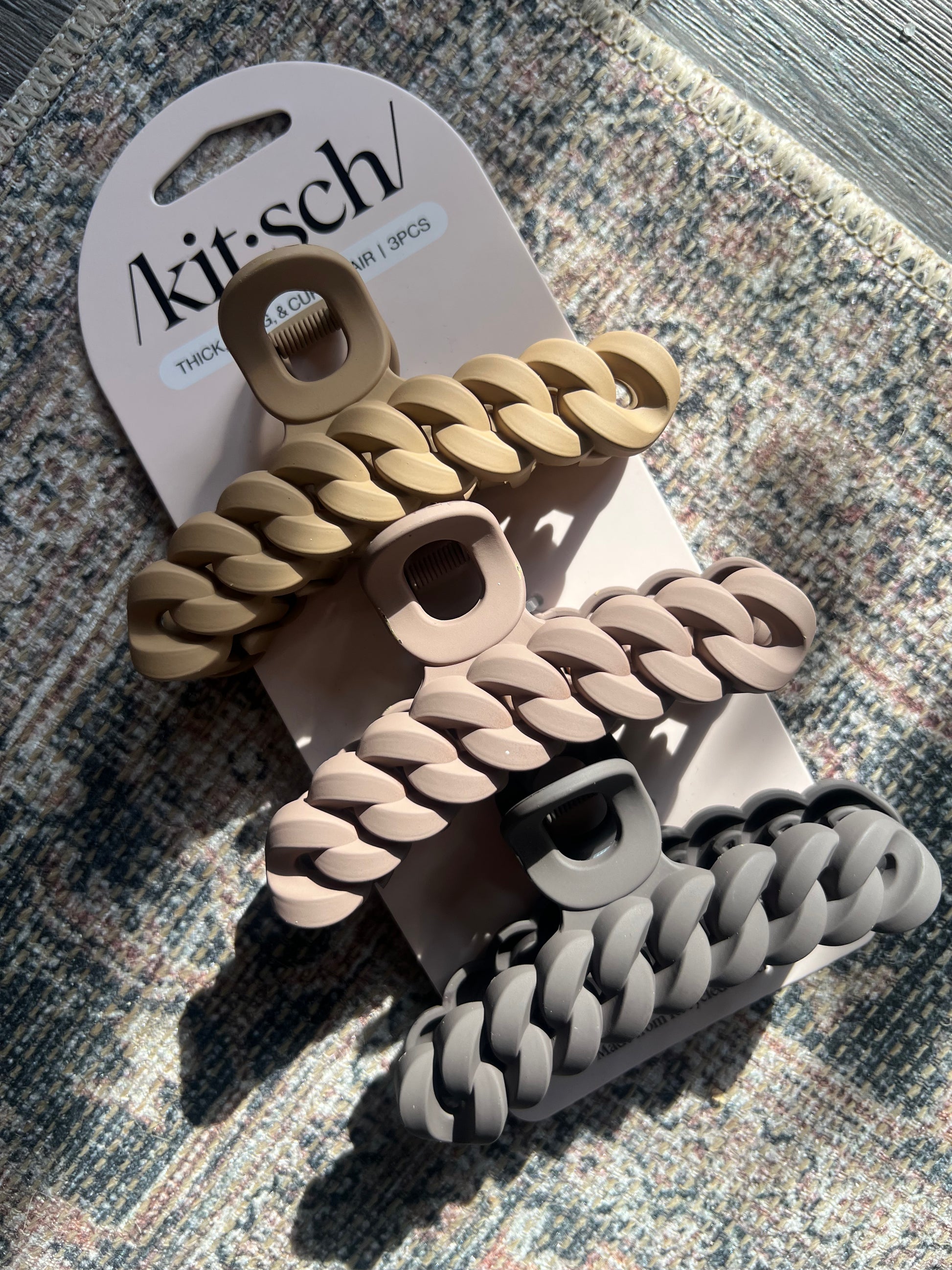 Step out looking effortlessly stylish with these sustainable chain claw clips. Our elevated take on the classic hair clip lets you twist your hair up with zero effort while making an on-trend statement. Crafted with recycled materials, these eco-friendly clips let you feel good about looking good. Choose from two sets of versatile neutrals to coordinate with all your favorite outfits.