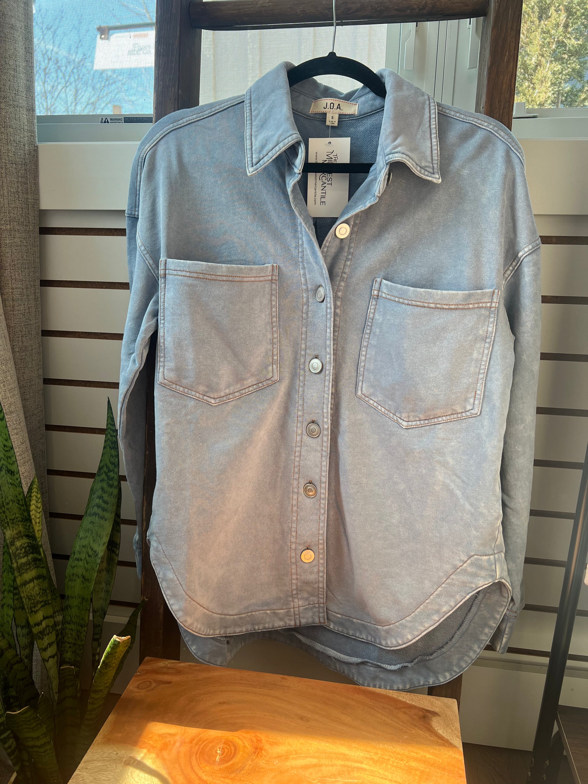 Meet your new everyday layer. The Driftwood Knit Shacket features a soft acid-washed finish, 100% cotton knit fabric, and a classic collared button-down design that blends effortless comfort with laid-back style.